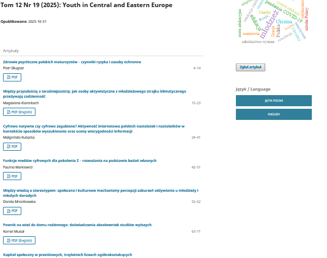 Nowy numer Youth in Central and Eastern Europe Tom 12 Nr 19 (2025): Youth in Central and Eastern Europe Nowy numer czasopisma koncentruje...